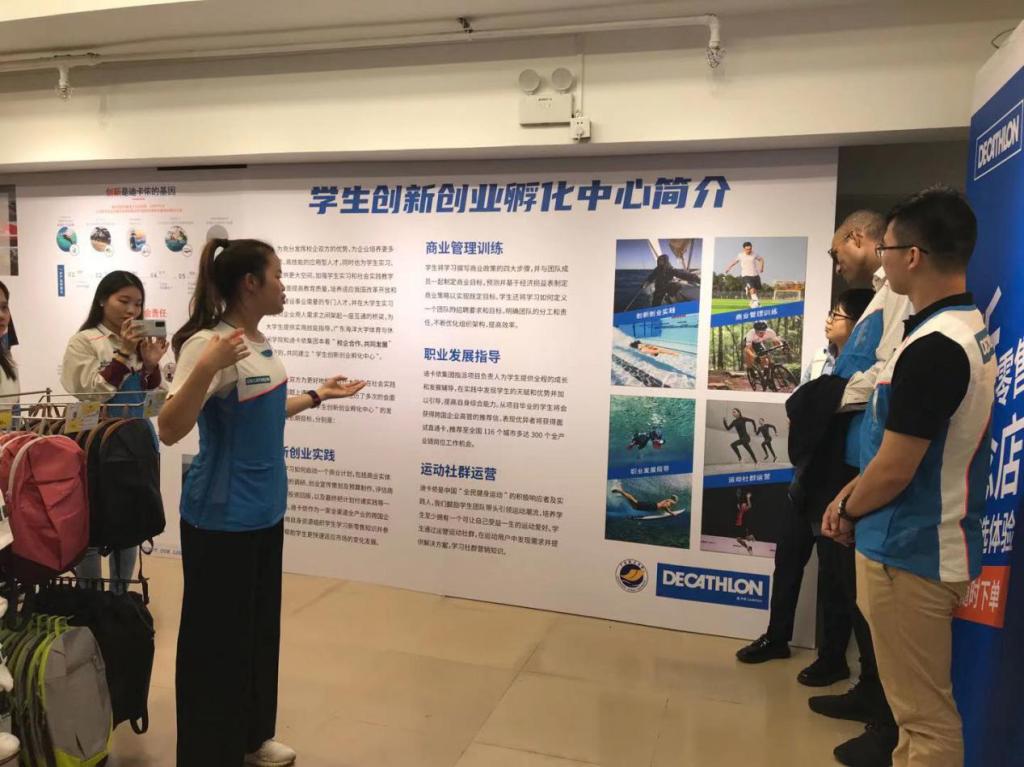 --迪卡侬学生创新创业孵化中心是以提高学生创新创业能力为主要目的,确定了“学生创新创业润化中心”的发展方向和长期目标。通过商业管理训练,就业发展指导,创新创业实践,运动社群运营等方面来解决大学生在社会实践和就业问题上遇到的痛点、难点。以达到大学生创新创业孵化的功能。