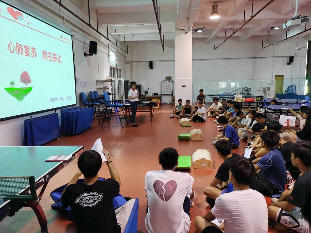 特邀湛江市红十字会来学院开展应急救护知识技能培训。湛江市红十字会副会长庞志军、学院副院长施俊华、红十字培训导师及百余名师生参加了培训开班仪式。