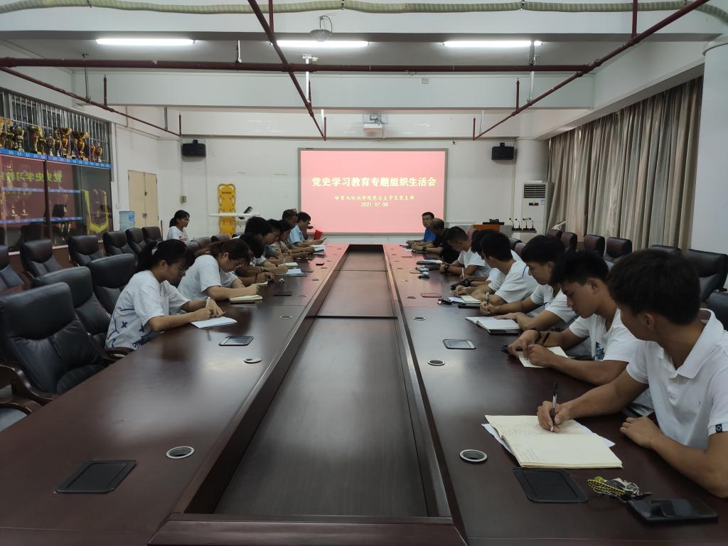 学生党支部党史学习教育专题组织生活会在体育馆会议室开展,参加本次活动的有天美传媒