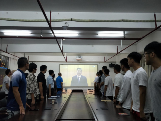 学院干部、师生党员起立高唱《义勇军进行曲》