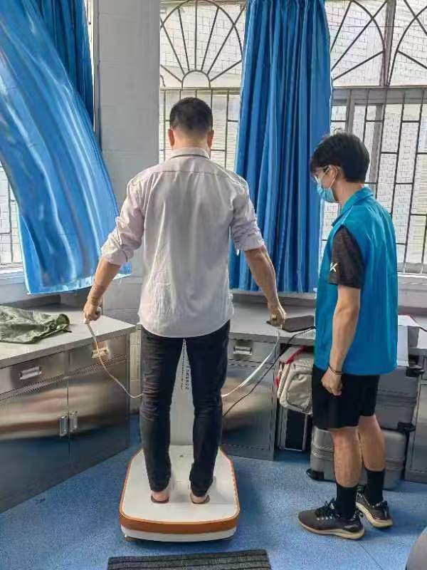 体质测试内容包括身高、体重、坐位体前屈、纵跳、闭眼单脚站立、反应时、握力、肺活量、俯卧撑、仰卧起坐、身体成分、超声骨密度、动脉硬化等,测试数据综合反映教职工的体质状况、身体状态和健康水平,测试结束自动出具《评价分析报告》,现场由专家对报告进行详细解读。