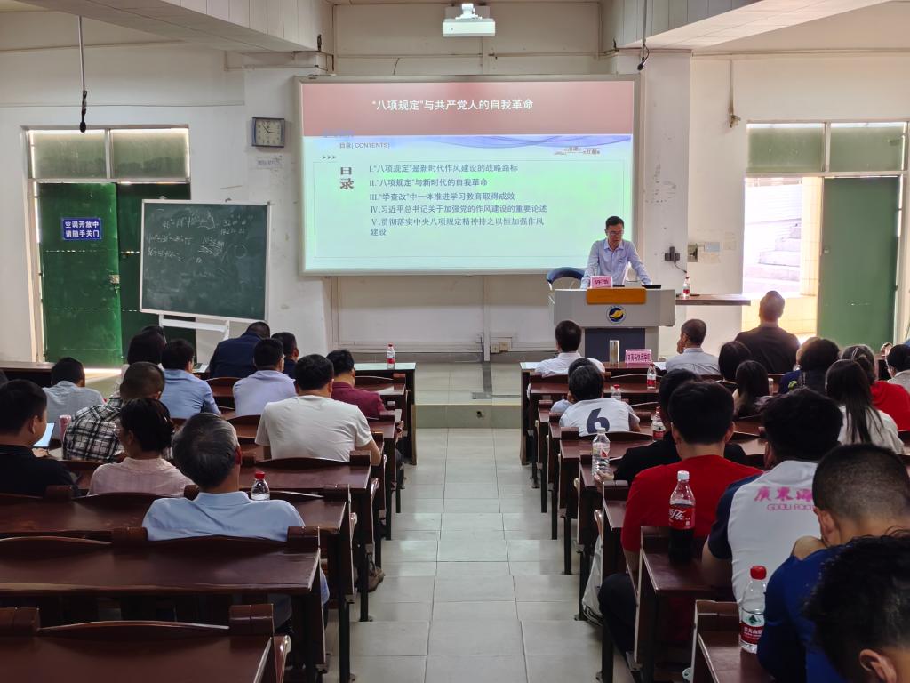 报告会邀请人文与教育学院党总支书记许浩副教授作题为“深入贯彻中央八项规定精神学习教育——中央八项规定与共产党人的自我革命”的辅导报告。许浩从中央八项规定是新时代作风建设的战略路标、中央八项规定与新时代自我革命、“学查改”中一体推进学习教育取得成效”习近平总书记关于加强党的作风建设的重要论述、高校违反中央八项规定精神典型案例、贯彻落实中央八项规定精神持之以恒加强作风建设等方面,对中央八项规定精神进行了全面、系统、深入地解读和阐释。