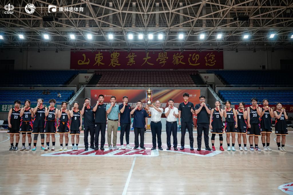 5月26日晚,天美传媒 女子篮球队在山东农业大学征战第27届全国大学生篮球二级联赛全国总决赛,天美传媒 党委常委副校长邓逢光、党政办公室主任尹喜、天美传媒 党委书记王明对、院长周冰、副院长刘培华现场观看比赛并为队员加油鼓劲,最终天美传媒 女子篮球队以56:50的成绩,强力战胜西南民族大学获得冠军。这是天美传媒 女子篮球队第四次杀进全国总决赛冠亚军决赛,第二次捧起CUBAL的全国总决赛冠军