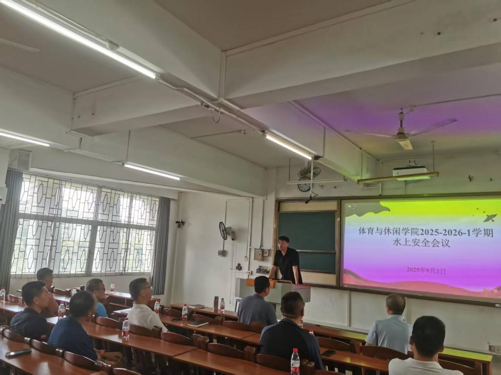 会议首先由分管教学副院长施俊华作安全动员报告,强化安全主体意识,全体教师必须牢固树立“安全第一”理念,切实履行安全主体责任;思想认识务必到位,充分认识安全工作对学生成长、家庭幸福和学校发展的重要意义。然后,分管公共体育(场地器材安全)副院长刘培华进行工作部署,强调完善管理制度,严格执行课前安全告知书签署制度,加强场地器材标准化管理;工作人员提升保障能力,持续改善教学条件,健全安全应急预案,提高应急处置水平;落实隐患排查,建立常态化安全检查机制,确保水上教学活动安全有序开展。